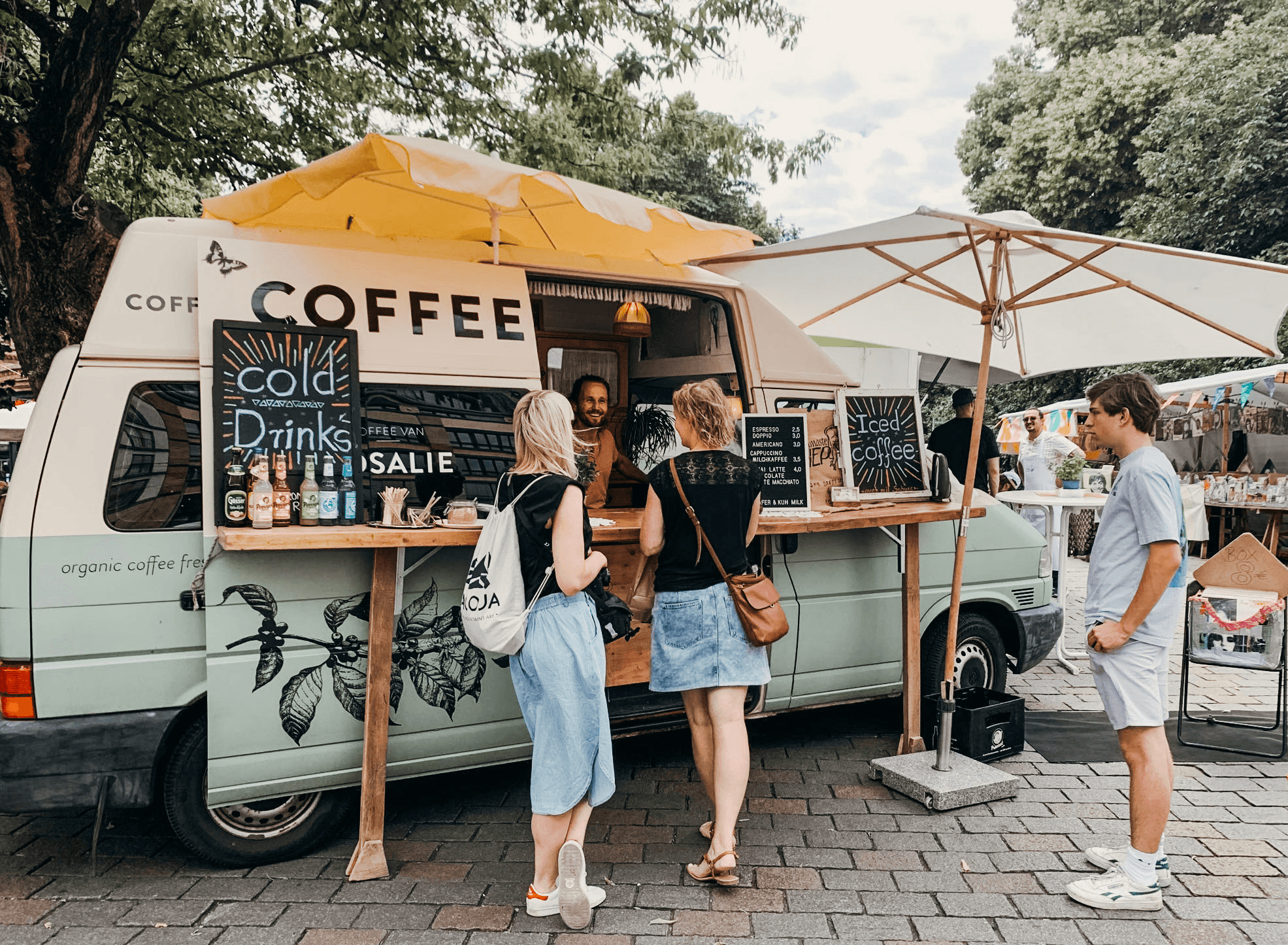 Ob Hochzeit, lebendiger Markt oder großes Festival: Rosalie bringt hochwertigen Kaffee, Ruhe und Atmosphäre an Orte, an denen Menschen zusammenkommen.