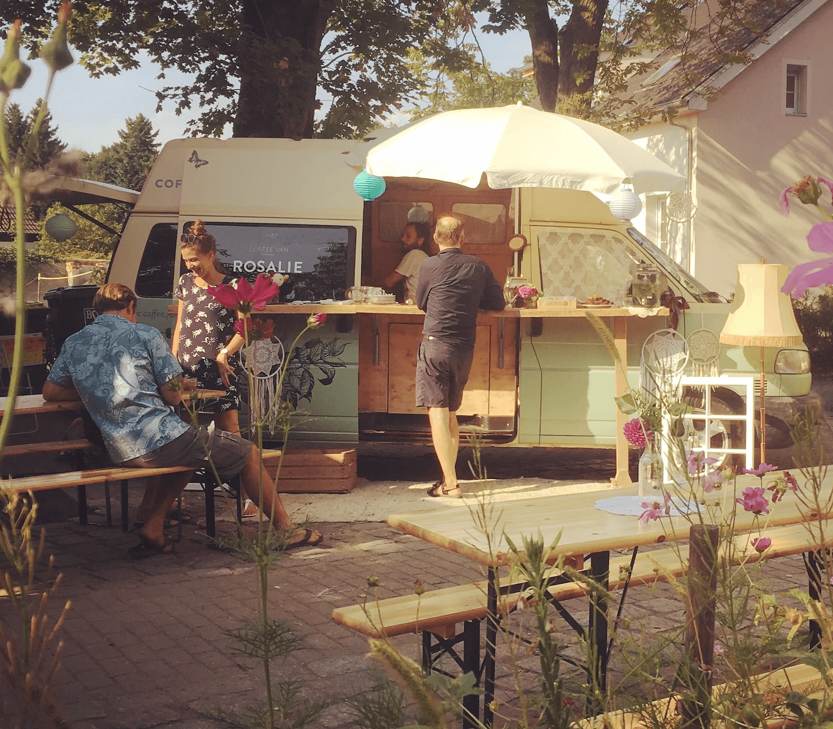 Rosalie bringt stilvollen Kaffeegenuss direkt zu deinem Event. Ob Hochzeit, Firmenfeier, Markt oder private Feier – der Coffee Van sorgt für besondere Atmosphäre und guten Kaffee mit viel Liebe zum Detail.
